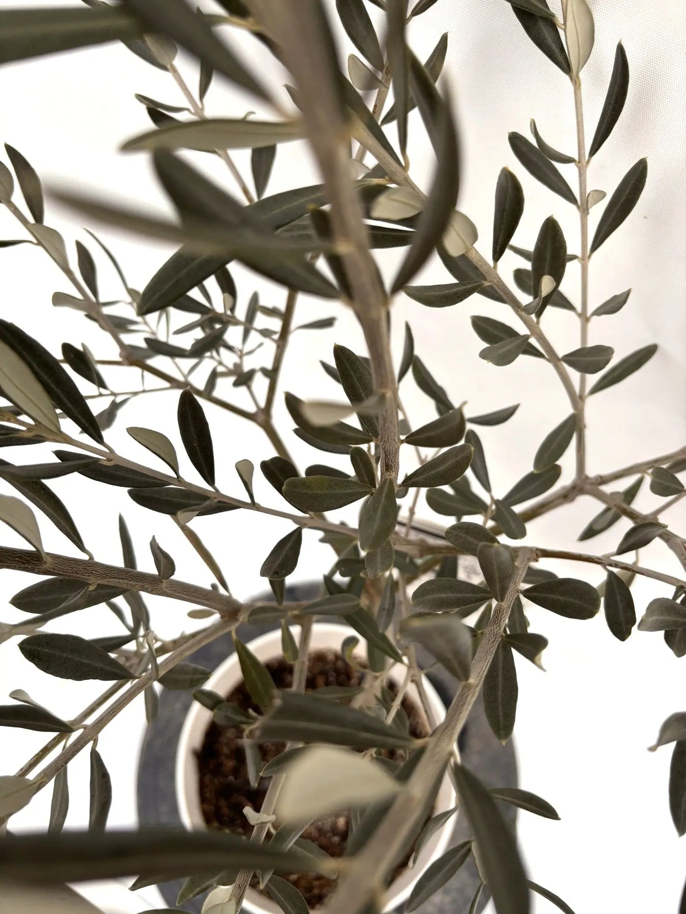 やや細長い濃緑色の葉表と銀白色の葉裏が美しいコントラストを演出します。葉密度が高くボリューム感のある樹姿に仕上がります。