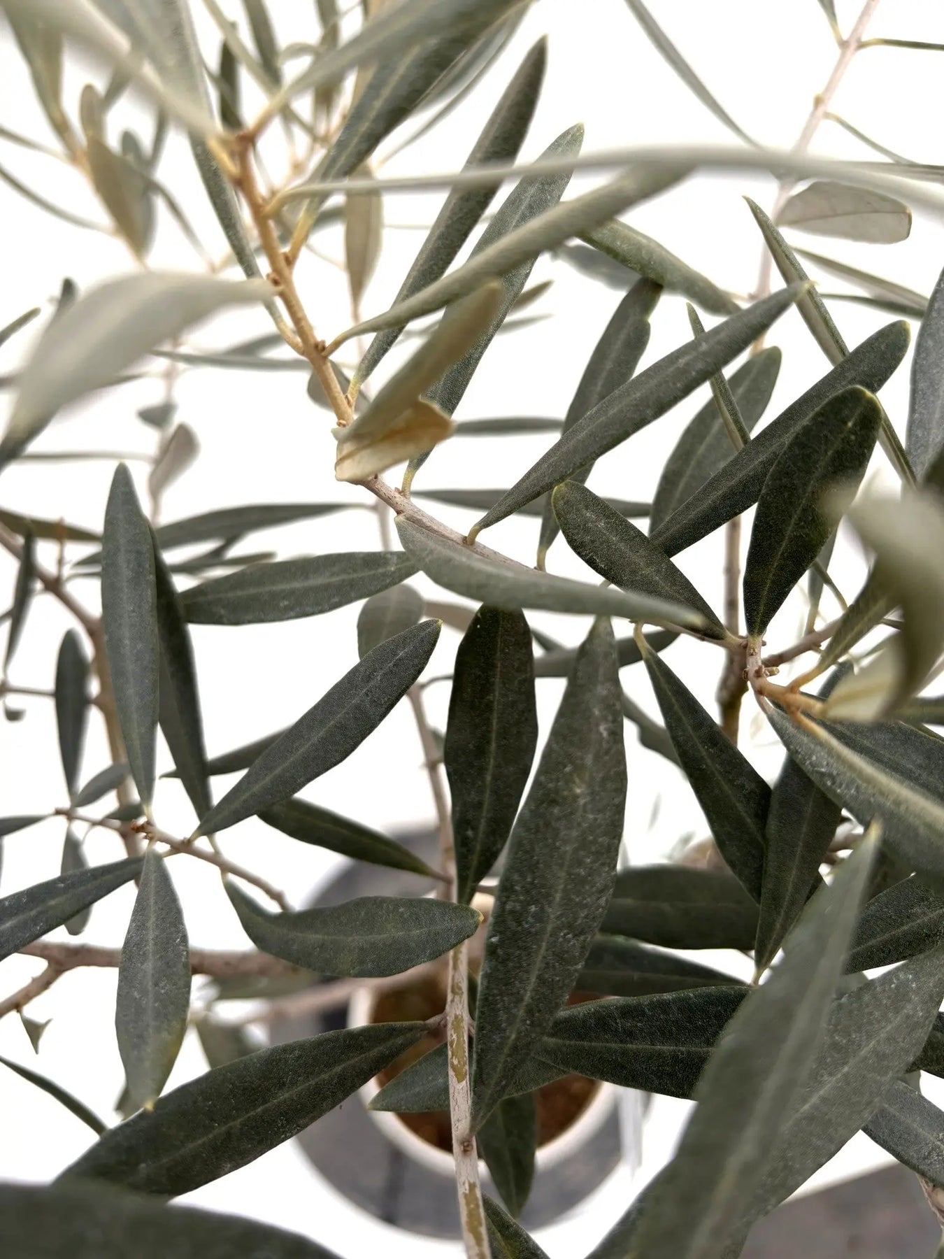 やや細長い濃緑色の葉表と銀白色の葉裏が美しいコントラストを演出します。葉密度が高くボリューム感のある樹姿に仕上がります。