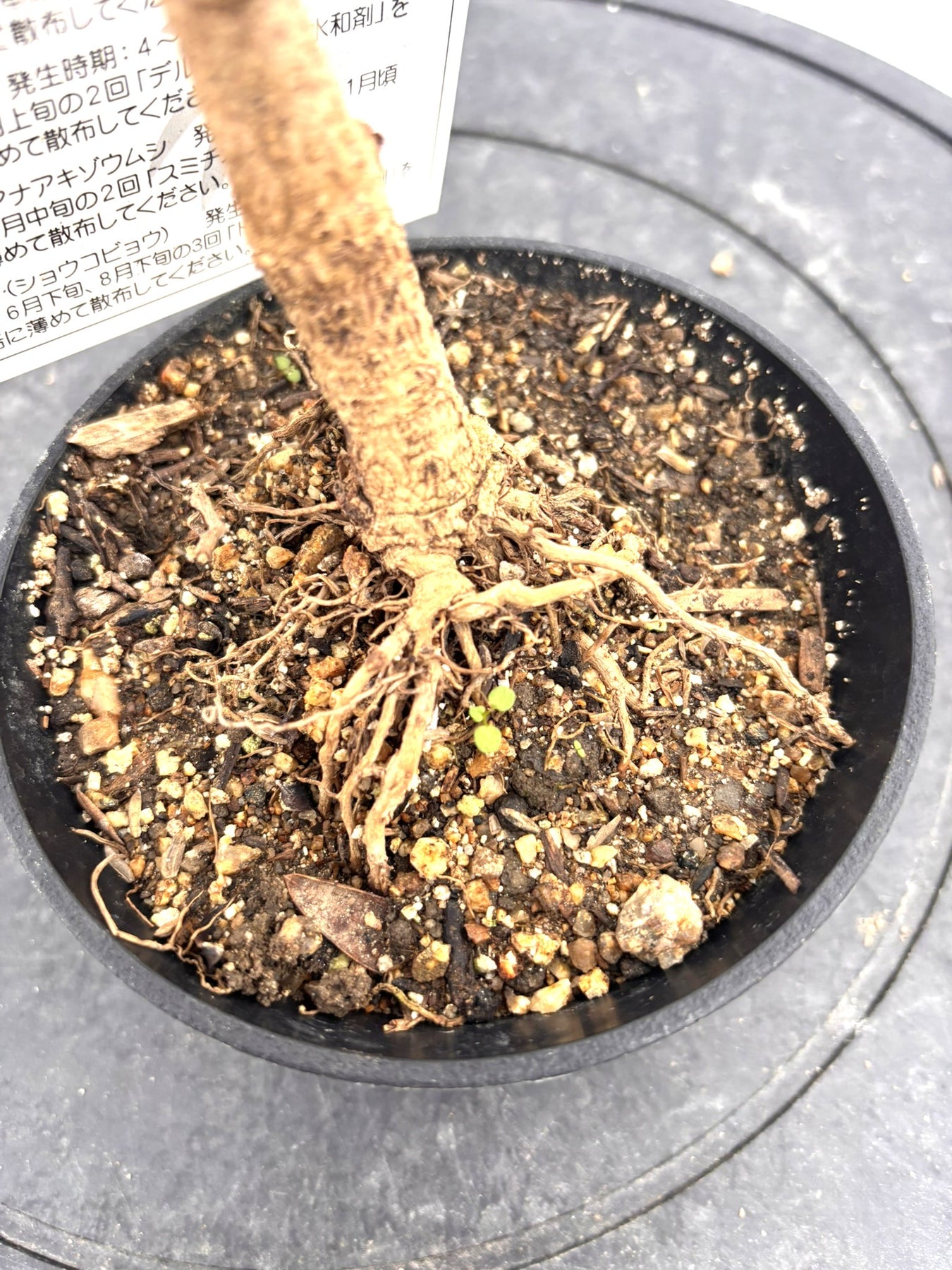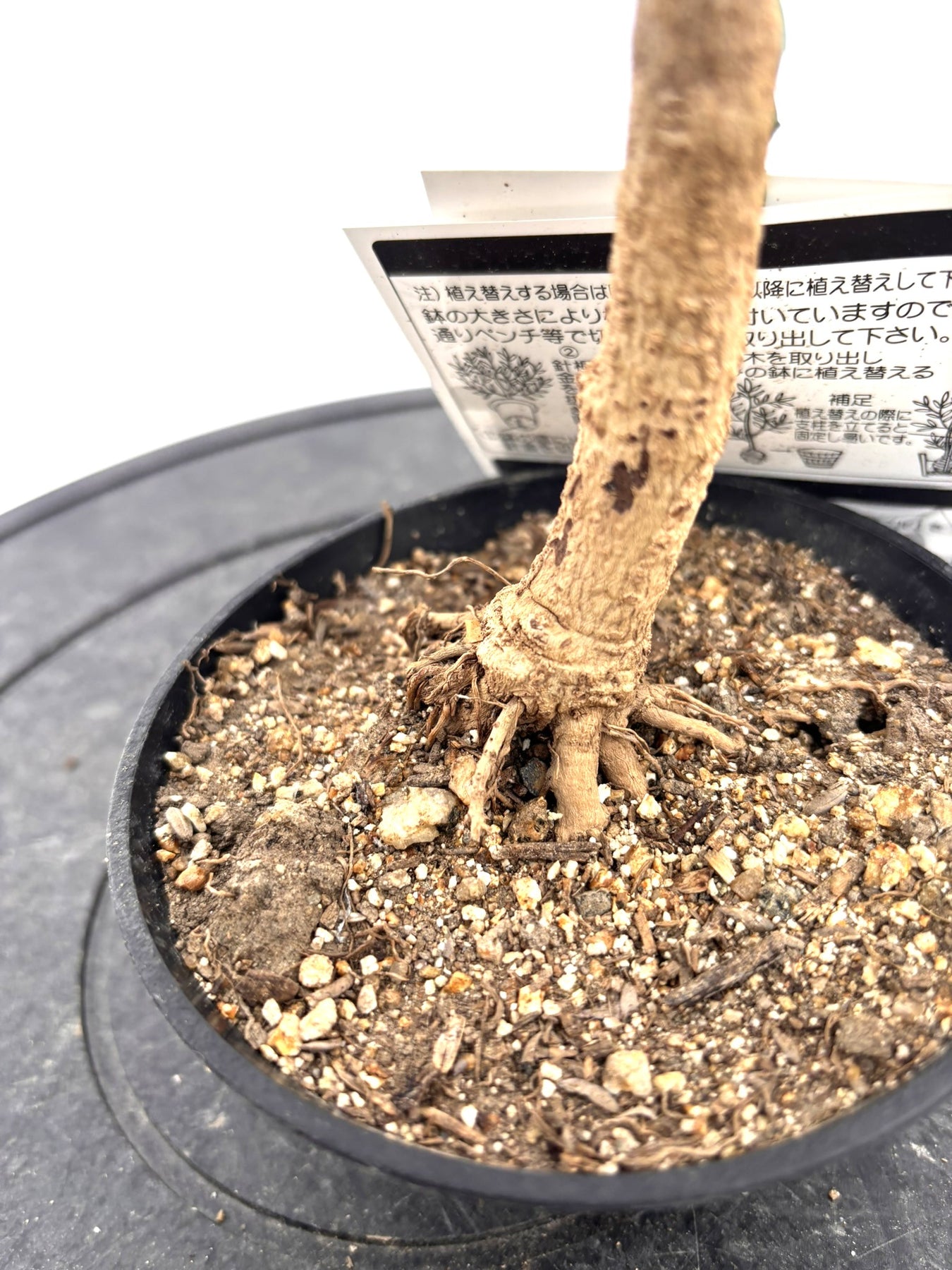 盆栽風オリーブ|鉢と用土のディテール|黒ポット仕立て(5号)
