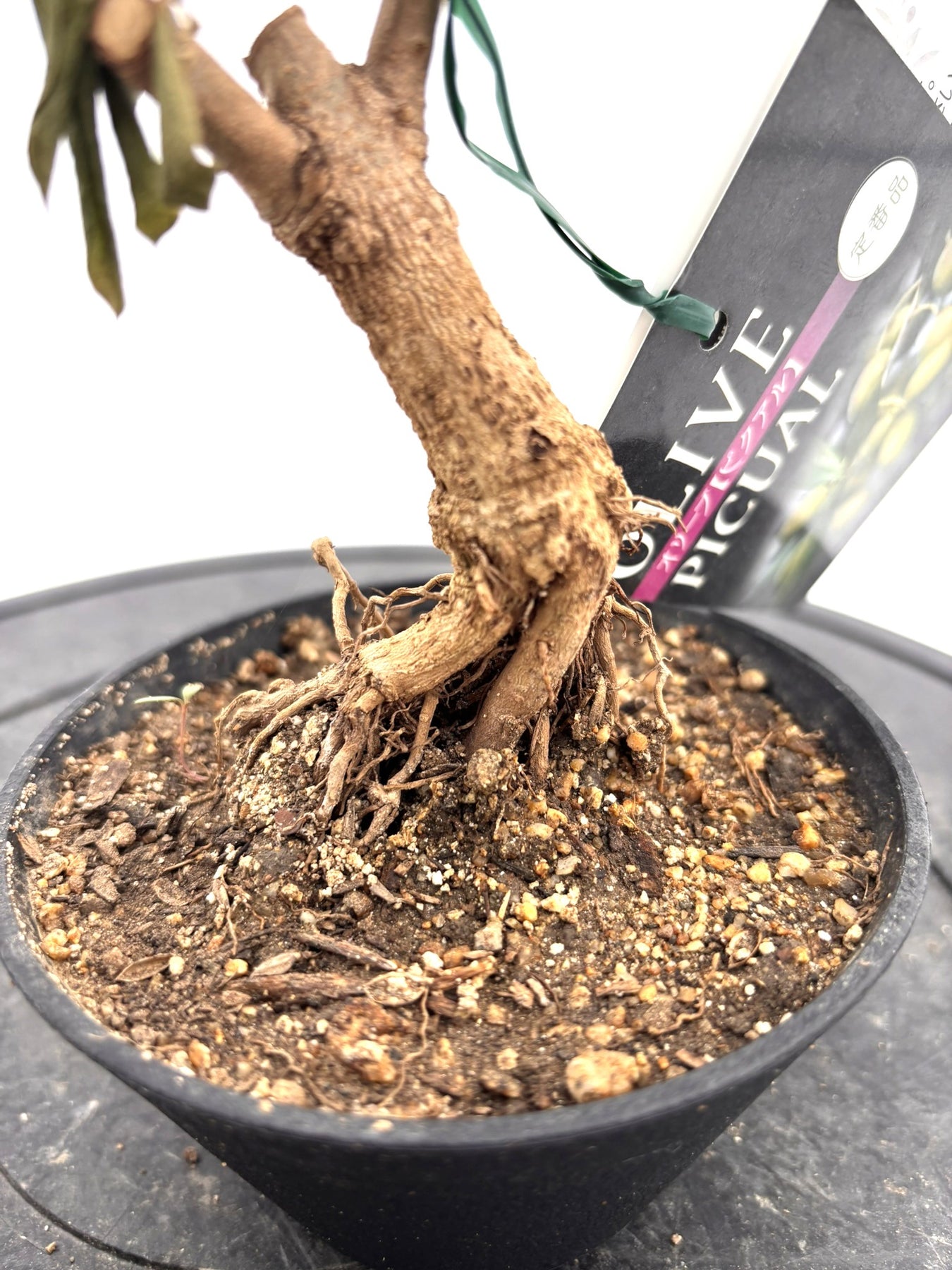 盆栽風オリーブ|幹の曲がりと根張りの造形美|幹太約3cm|XXSサイズ