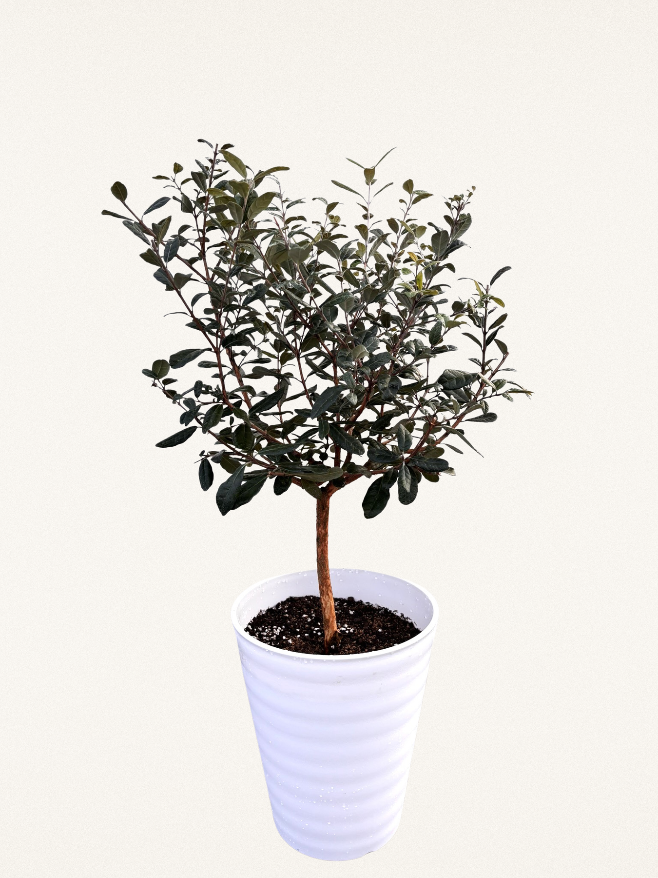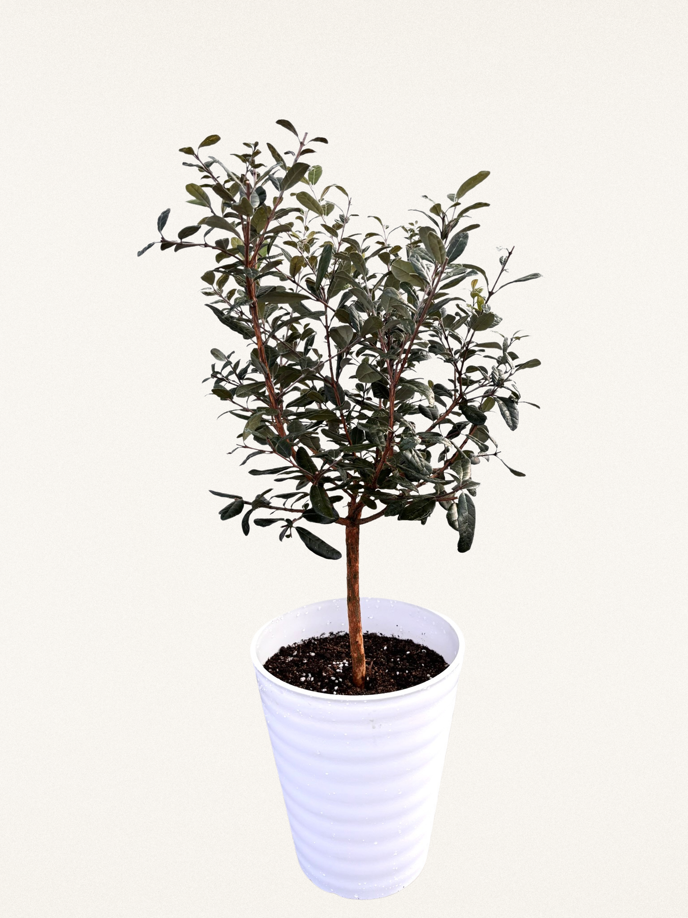 • 🌿 厚みのある葉と落ち着いたグリーンが魅力の常緑果樹
