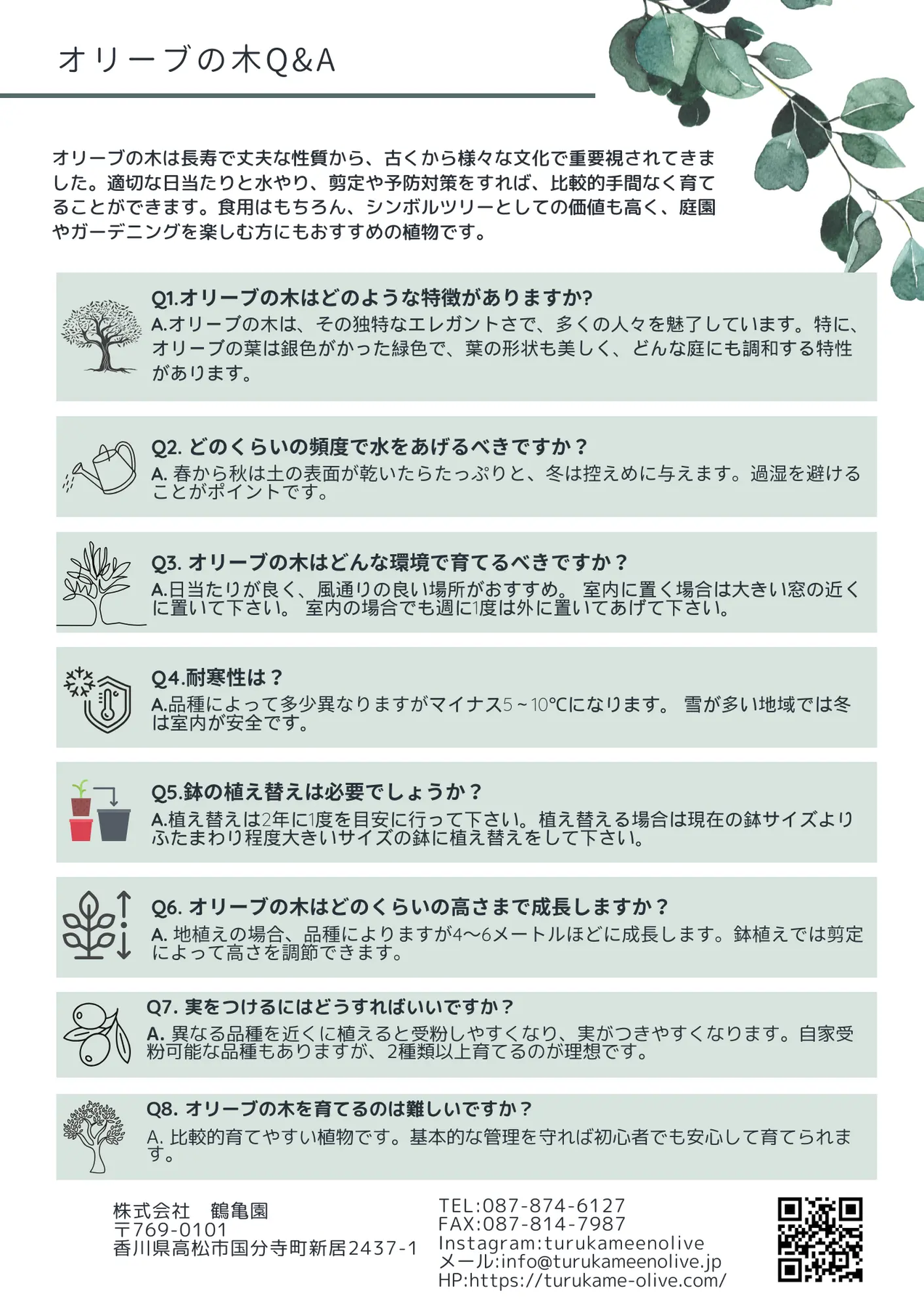 • どなたでも安心してオリーブをお迎え・育成できるよう、お手入れ方法をまとめたカードを同梱しています。